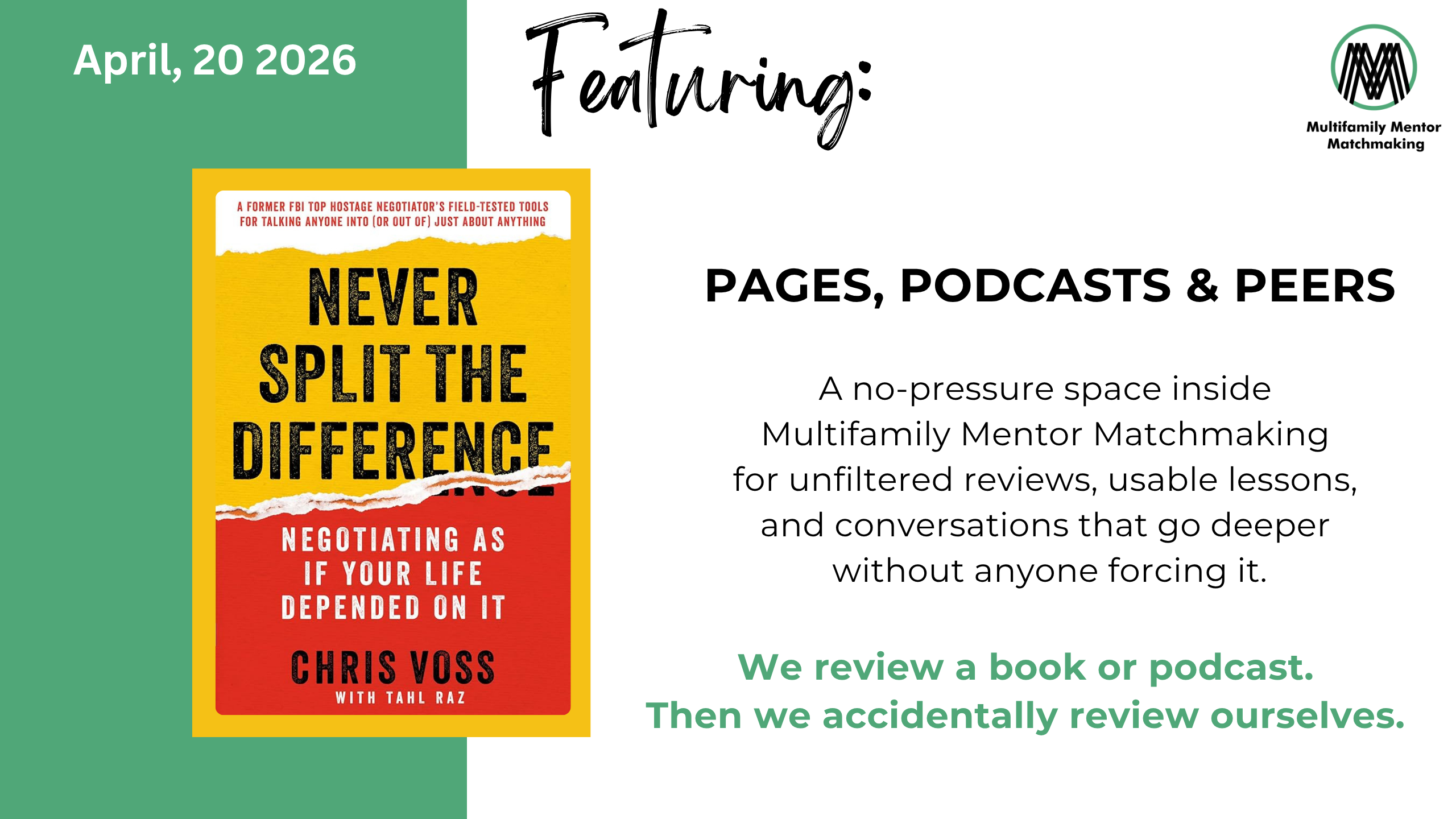 Discuss “Never Split The Difference” for Pages, Podcasts & Peers